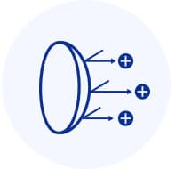 「イオン性」レンズはマイナスイオンを帯びているため、レンズが汚れを引きつけやすくなります。リフレアのコンタクトレンズは「非イオンレンズ」のため「イオン性」レンズに比べ汚れがつきにくく、長時間の装用でもクリアな視界が続きます。